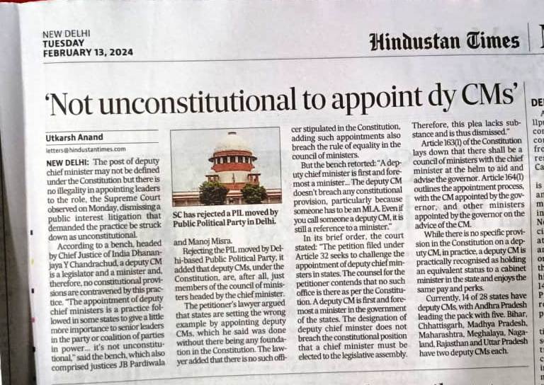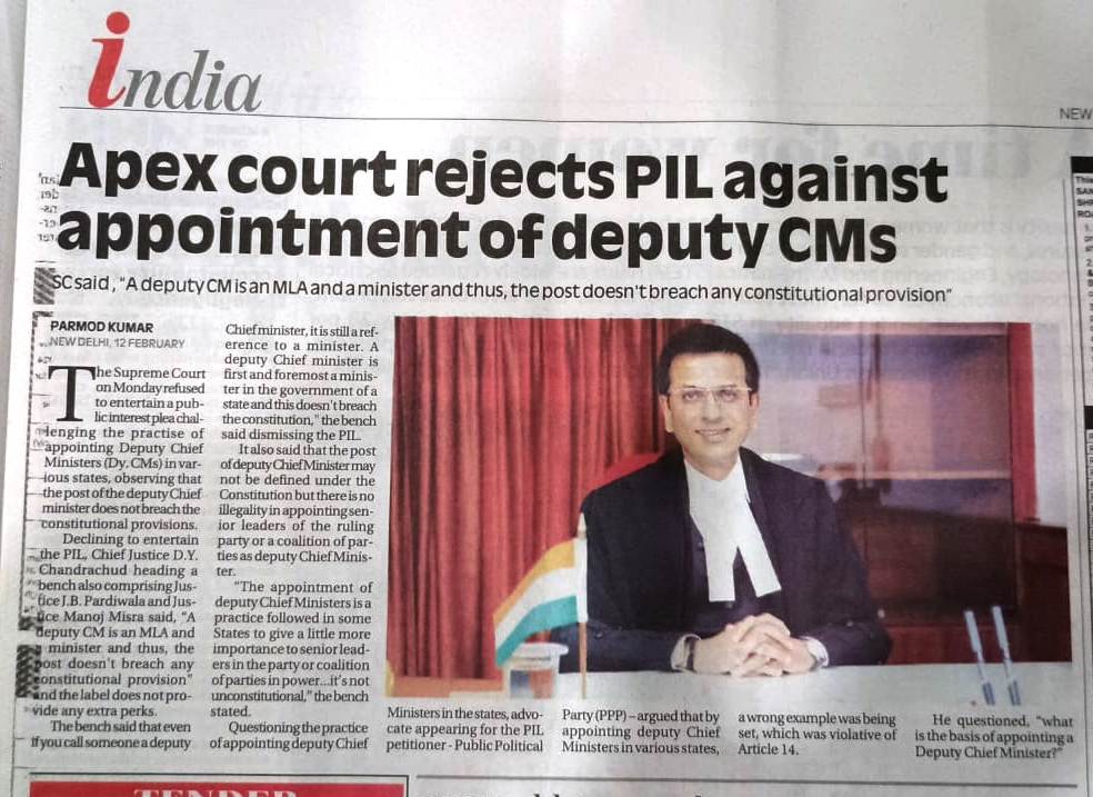 उच्चतम न्यायालय में दाखिल की गई याचिका पर 12 फरवरी को सुनवाई में पब्लिक पोलिटिकल पार्टी द्वारा दायर की गई PIL को सुप्रीम कोर्ट ने रिजेक्ट कर दिया.