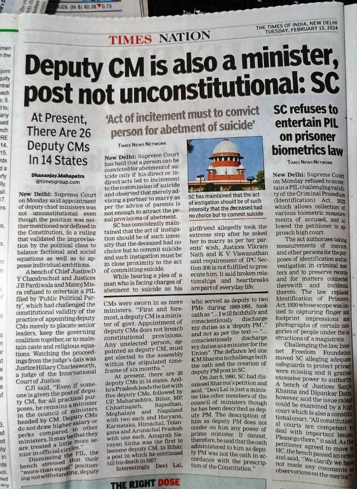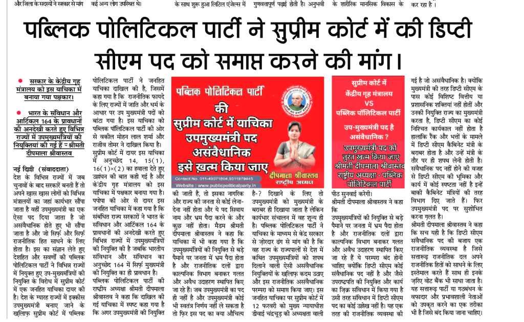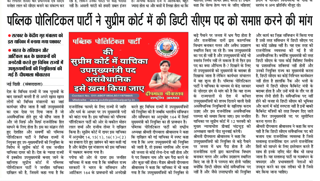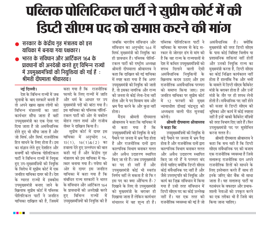 उपमुख्यमंत्री का पद न तो संवैधानिक है और न ही किसी काम का होता है बल्कि ये सिर्फ़ राजनीतिक हित साधने के लिए होता है : श्रीमती दीपमाला श्रीवास्तव